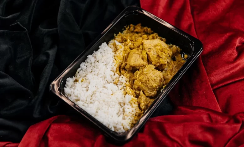 Шаг 2: Разложите рис рядом с карри или под карри, создавая красивый контраст цветов и текстур.